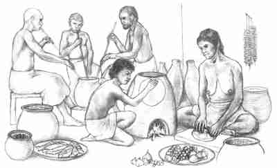 Many types of preserved food were produced in ancient Sumer. These included dried figs and apples, which were thread on string like those shown hanging on the wall. Pulses such as beans, peas, and lentils were also dried, as were grapes to produce raisons. Nuts too, such as almonds and pistachio that were eaten in Sumer can be kept a long time in dry conditions as can garlic. Milk, because it did not keep well in the hot climate, was mainly used to make yoghurt, or a form of butter know as ghee and cheese. Fish were often dried, salted, or smoked and meat was pickled. Two other consumables that were similarly important in the Sumer were bread and beer, both normally made from barley. Bread is still cooked in the Middle East using tanur ovens like the one illustrated. Beer was often drunk through a reed from a communal pot, or using a silver straw if you were wealthy. Wine was also produced from grapes, in addition to the alcoholic beverages produced from figs and dates - and most types of alcoholic drink keep well. The preservation of food and drink were probably significant factors in ensuring the long-term viability of the earliest urban societies. |